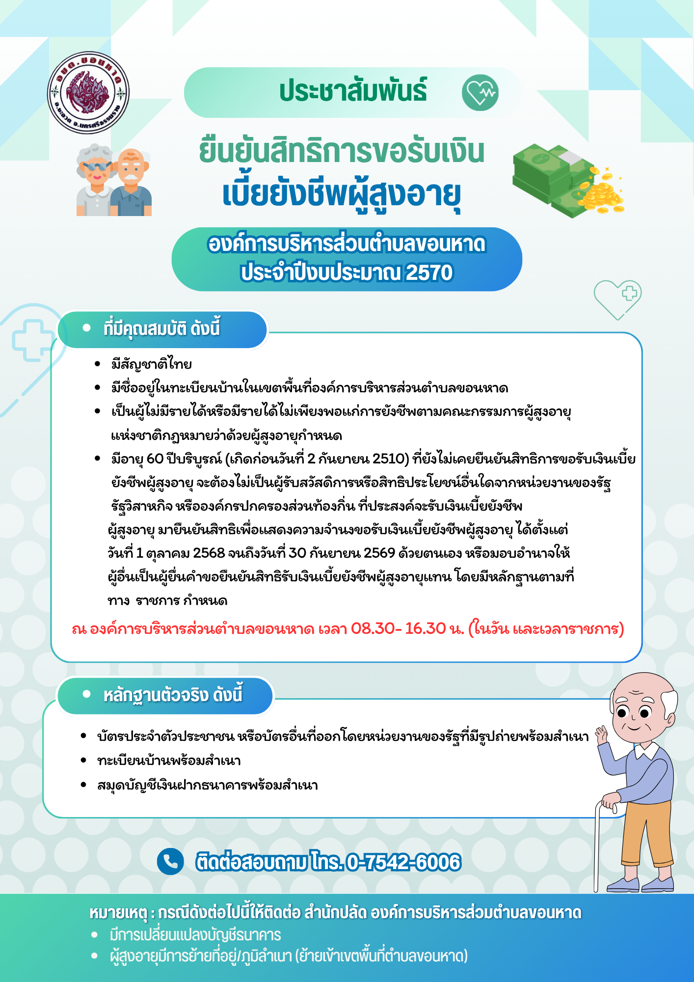 การยืนยันสิทธิการขอรับเงินเบี้ยยังชีพผู้สูงอายุ ประจำปีงบประมาณ 2570