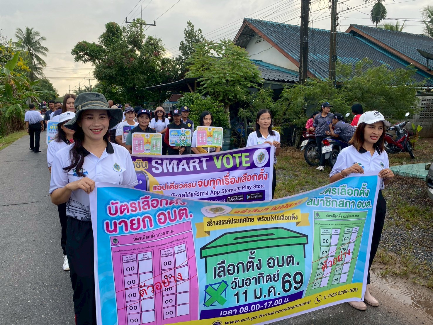 นายสุพัฒ คะภะสุวรรณ ปลัดอาวุโส ข้าราชการ ฝ่ายปกครองท้องถิ่น และเจ้าหน้าที่องค์การบริหารส่วนตำบลขอนหาด ร่วมเดินการจัดกิจกรรมรณรงค์ไปใช้สิทธิเลือกตั้งสมาชิกสภาองค์การบริหารส่วนตำบลและนายกองค์การบริหารส่วนตำบล (Big Day)