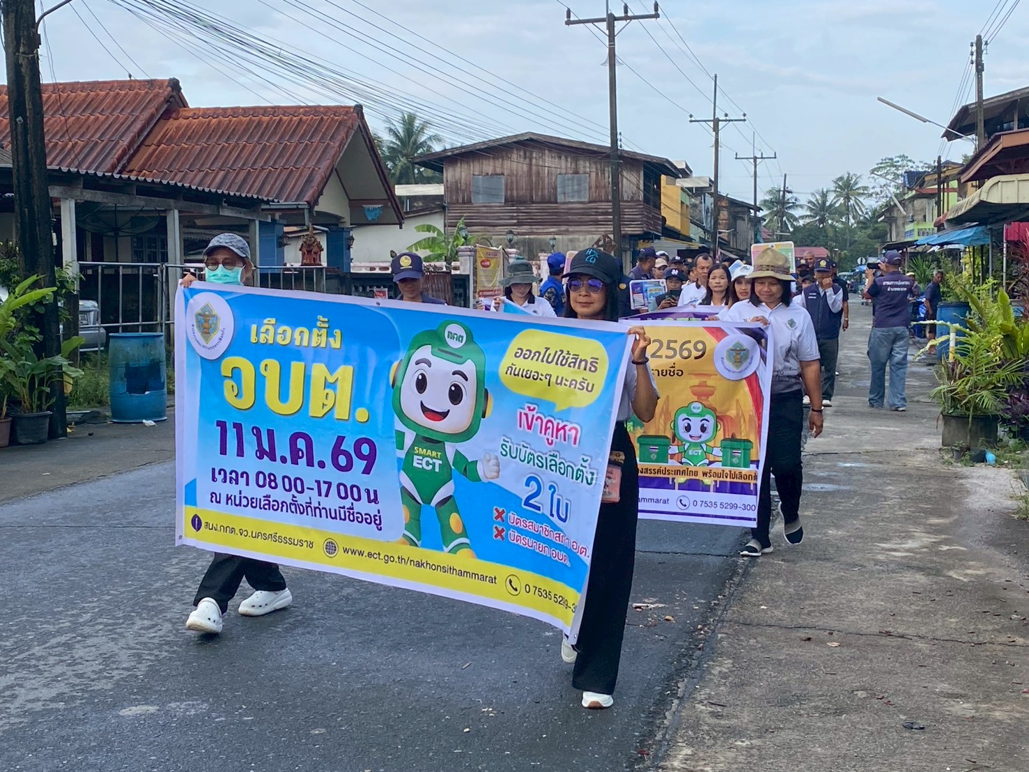 นายสุพัฒ คะภะสุวรรณ ปลัดอาวุโส ข้าราชการ ฝ่ายปกครองท้องถิ่น และเจ้าหน้าที่องค์การบริหารส่วนตำบลขอนหาด ร่วมเดินการจัดกิจกรรมรณรงค์ไปใช้สิทธิเลือกตั้งสมาชิกสภาองค์การบริหารส่วนตำบลและนายกองค์การบริหารส่วนตำบล (Big Day)