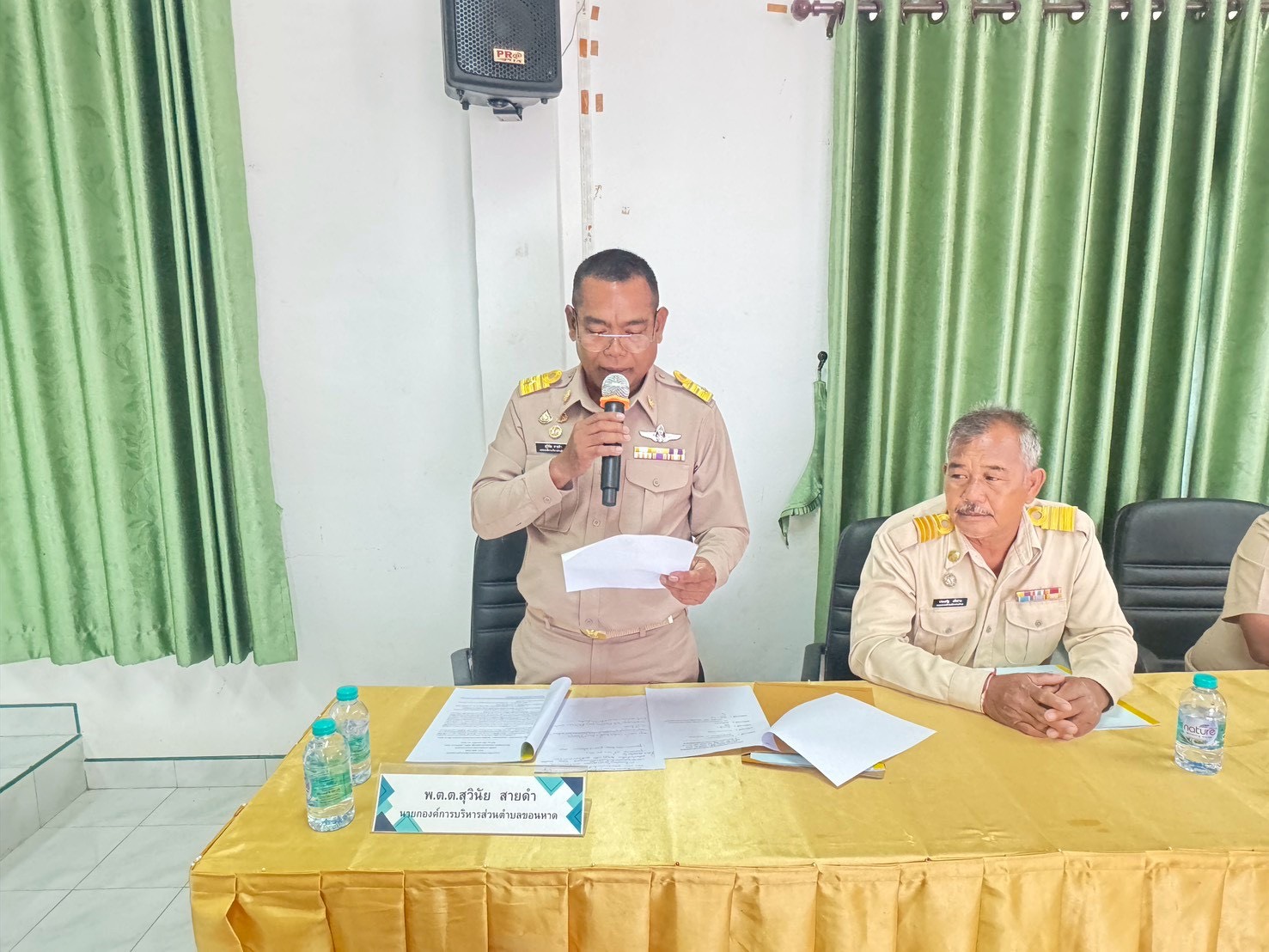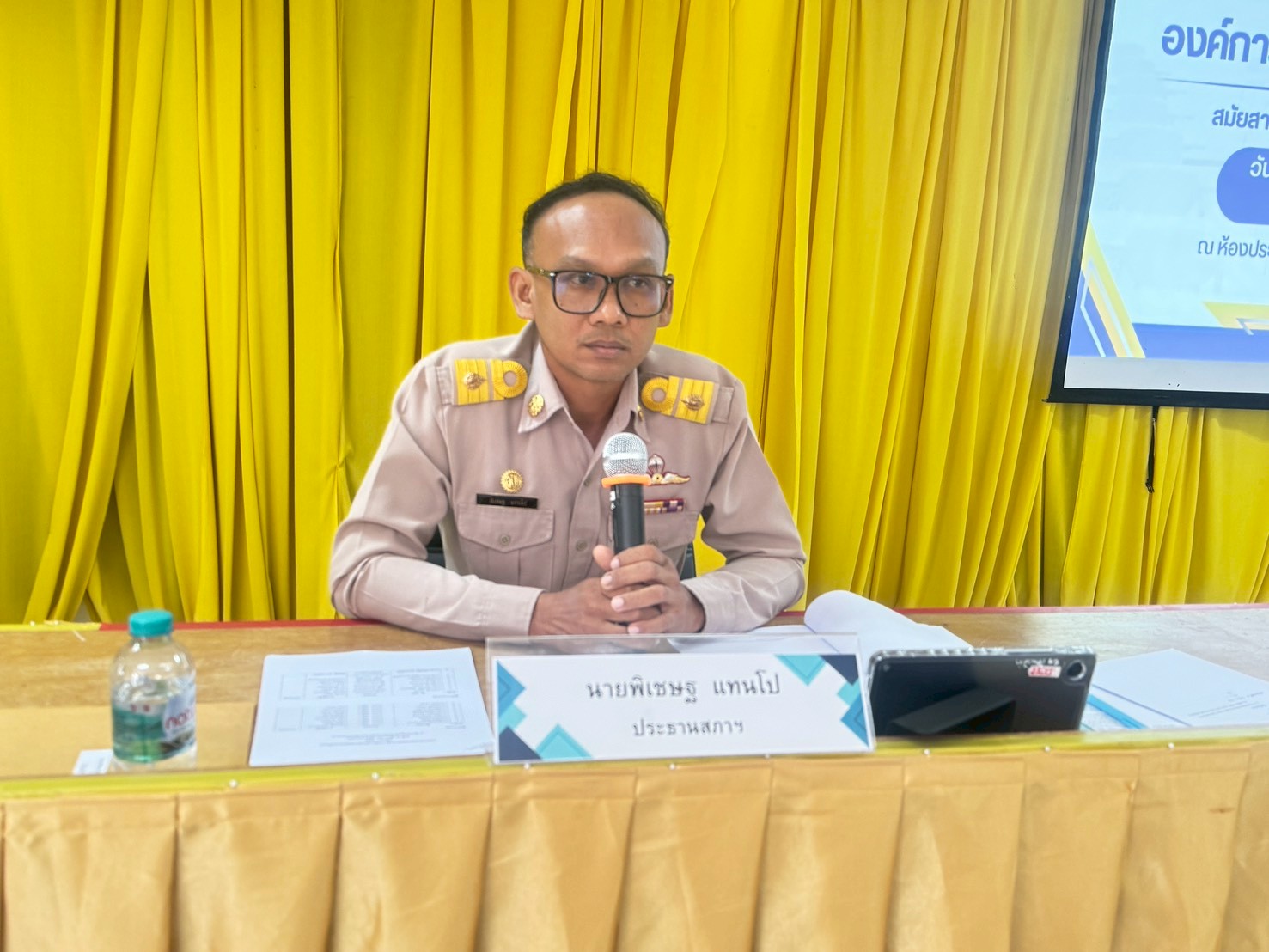 วันที่ 27 กุมพาพันธ์ พ.ศ.2569 สภาองค์การบริหารส่วนตำบลขอนหาด ประชุมสภาฯ สมัยสามัญ สมัยแรก ครั้งที่ 1 ประจำปี พ.ศ.2569 นายกองค์การบริหารส่วนตำบลขอนหาด พ.ต.ต.สุวินัย สายดำ แถลงนโยบายต่อสภาองค์การบริหารส่วนตำบลขอนหาด ณ ห้องประชุมองค์การบริหารส่วนตำบลขอนหาด